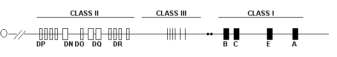 It is the human major histocompatibility complex. The genetic loci are located on the short arm of chromosome 6. It is made up of several closely linked genetic loci in three classes. Fig. 40.