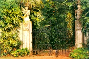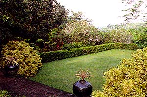 His house and its legendary garden share this quality; in fact, they seem to emanate from him, to be extensions of his felicitous personality. Pass through the tall, statue-capped gateway set in the thick bamboo hedge and you enter Bevis's universe. Time runs more slowly here, and the world's increasing ugliness does not intrude. Along the jungly perimeter path, through the Japanese garden, across the wide lawns and by the round pond, everywhere in the garden its creator's presence is manifest, though Bevis himself sits becalmed on his verandah, far away, invisible.