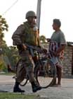 Dec 28 (Reuters) A Sri Lankan government soldier walks on a street in Jaffna, northern Sri Lanka. Fuelling fears of a return to civil war, suspected Tamil Tiger rebels killed 10 soldiers in the island's far north on Tuesday
