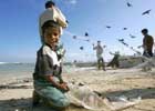 Dec 28 (Reuters) A Tamil boy collects small fish dropped from fishing nets at Polikandy fishing village in Jaffna. Watching fish auction in Sri Lanka's tsunami battered north,