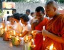 Feb 16 (GI) Sri Lankan Buddhist monks light lamps at a religious service in Colombo, 14 February 2005 , to counter Valentine's Day celebrations.