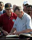 Feb 20 (Yahoo) Former presidents Bill Clinton (L) and George Bush sign a guest book upon their arrival at Colombo's International Airport February 20, 2005.