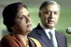 Jan 9 (GI) Sri Lankan President Chandrika Kumaratunga (L) looks on as Pakistani Prime Minister Shaukat Aziz answers a question during a press briefing after a meeting in Islamabad.