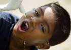 Jan 15 (Yahoo) A Sri Lankan boy displaced by tsunami drinks water from a tap at a make-shift shelter in a school in the town of Kalmunai on Sri Lanka's east coast January 15, 2005.