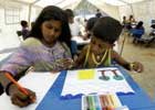 Jan 24 (GI) Displaced Sri Lankan children draw paintings at an Austrian run relief camp in Galle, some 120kms south of Colombo, 23 January 2005.