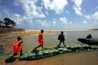 Jan 24 (Yahoo) Young Sri Lankan tsunami survivors wear life jackets as they walk towards speed boats to cross a bay after the local bridge was washed away by the tsunami in Pottivul,