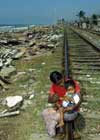 Jan 25 (GI) A Sri Lankan tsunami survivor feeds her child sitting on a railway track in the Colombo suburb of Moratuwa 25 January 2005.