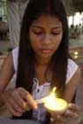 Jan 27 (GI) A Sri Lankan student lights a candle for tsunami victims in Colombo, 26 January 2005.