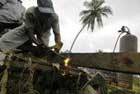 Jan 30 (GI) A Sri Lankan railways employee cuts a iron track at the railway station in Payagala South, some 58 km south of Colombo, 30 January 2005.