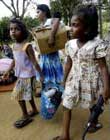 Jan 31 (GI) Sri Lankan children carry their belongings from a refugee camp to a shelter built by The Ministry of Urban Development in Kalutara North,some 48kms south of Colombo,