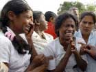 Aug 27 (Reuters) An unidentified relative (L) and Chandalatha Gunaratne (C) cry during Gunaratne's husband, D.A. Lenin's funeral in Trincomalee, August 26, 2006. Lenin, an ethnic Singhalese, was killed by unknown gunmen on Thursday.