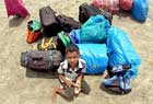 Aug 23 (Reuters) A Sri Lankan child sits with his belongings at Arichal Munai in Ramanathapuram district.