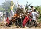Jan 24 (Reuters) Tamil protesters burn effigy of President Mahinda Rajapakse after a protest march against the Sri Lankan army on the A9 highway at Omanthai unman area in Vavuniya, northern Sri Lanka January 24.