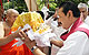 Sept 12 (CT) Despite a manhunt being launched by the police to nab Minister Mervyn Silva’s son, Malaka and the late Minister Mano Wijeratne’s stepson, Rehan Wijeratne – who are accused of assaulting an Army officer, Malaka Silva was seen paying homage to the Kapilavastu Relics that were on display at the Kelaniya Raja Maha Viharaya yesterday, accompanied by his father and a large security contingent.