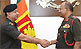 Nov 11 (SLA) Four senior officers, representing a 20-member military delegation of the Army War College of India, currently on a familiarization tour, called on the Commander of the Army, Daya Ratnayake at the Army Headquarters, Monday. Led by Brigadier J.S Sandhu, a Directing Staff at Higher Command Wing, Army War College of India, the group from the Army Higher Command Course of the Army War College of India, included