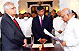 Jul 22 (CT) Prez Ranil Wickremesinghe, following the swearing-in ceremony held at Parliament, arrived at the Defence Ministry, situated at the Defence Headquarters Complex in Sri J'pura, Kotte yesterday. General Kamal Gunaratne, the Secretary to the Ministry of Defence, welcomed the Prez upon his arrival at the Ministry. During his maiden visit to a State establishment, after swearing in as the Prez last morning, Prez met the country’s defence top brass for a brief discussion.
