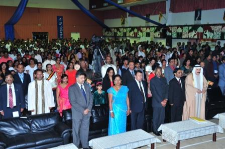 For the first time ever, the "Sri Lanka's National Day" was celebrated in an unprecedented scale by the Sri Lankan community in Bahrain on 12th February 2010 at the Indian School in Isa Town, with the presence of distinguished guests from the Bahraini Government, members of the Diplomatic & Consular Corps, the international community and a large gathering of Sri Lankans well over 1200.