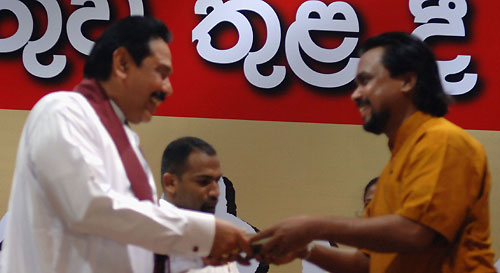Wimal’s ‘Garu Kathanayaka Thumani’ presented to President Rajapaksa