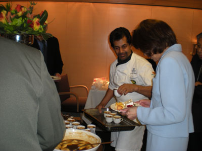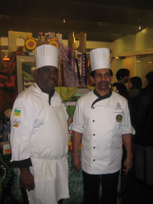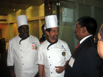 On Tuesday (23 February 2010), Restaurants Associates (RA) at the World Bank and the Embassy of Sri Lanka in Washington, D.C. inaugurated the first day of “Celebrating Sri Lankan Cuisine, a special country promotion, launched under the RA’s “Heritage Days” luncheon series. The inaugural luncheon, prepared by two leading chefs specially flown from Sri Lanka, namely, Chef Gerard Mendis of Hilton, Colombo and his colleague, Chef Madhawa Weerabaddhana, featured a colorful spread of seafood, curries and vegetarian dishes laced with authentic Sri Lankan spices. The occasion was attended by as many as two hundred guests, including a large number of senior executives representing the World Bank, the IMF, the Office of the USTR and the US Departments of State, Commerce and Defense. “Welcome to Sri Lanka,” Ambassador Jaliya Wickramasuriya greeted the busy executive dining room. “As I was arriving at this restaurant, I saw a Sri Lankan Airlines hostess, I saw a Sri Lanka Tourism video playing and I smelled the Sri Lankan food. I felt like I was in Sri Lanka. I believe our food will tempt all our guests to visit Sri Lanka on their next vacation.” Apart from stunning, spicy entrees, the luncheon also highlighted Sri Lanka as a premiere travel destination, following the “New York Times” recent designation of Sri Lanka as the number one place to visit in 2010. Mr. Dillan Ariyawansa, Sri Lankan Airlines' Senior Vice President in the U.S., Canada and Caribbean, also attended the lunch to boost travel prospects. The guests, who were highly pleased with the feast, were deeply appreciative of the Restaurant Associates and the Sri Lankan Embassy for the rare opportunity given. With over 240 guests, the second day luncheon, 24th Feb., the bank’s executive dinning room saw the highest number of diners at in the entire history of “Heritage Days” series so far. On 25th and 26th, Chefs Gerard and Madhawa will offer their specialties in the bank’s larger cafeteria, which serves over 3,500 meals a day and the World Bank’s International Finance Corp.(IFC) dining room respectively. On March 2, the chefs will stage a special Sri Lankan dinner at the prestigious Time Warner Center in New York City for another executive gathering that will include a large number of representatives from the travel trade.