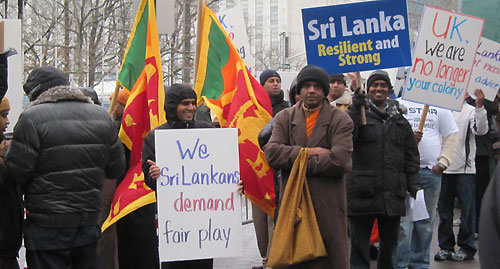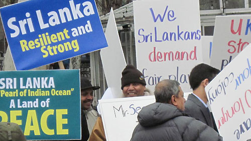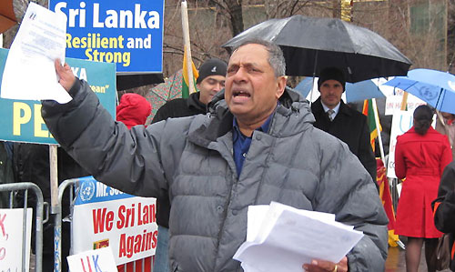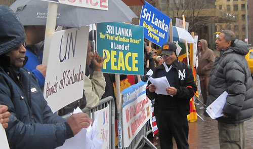 On March 12, 2010 a large number of Sri Lankan expatriates in New York gathered outside the UN Headquarters amidst a steady downpour and freezing temperatures to protest against UNSG Ban Ki-moon’s announced intention of establishing a Panel of Experts to look into alleged human rights violations in Sri Lanka.