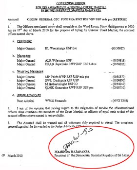 President Rajapakse appointed Judges of fraudulent military tribunal