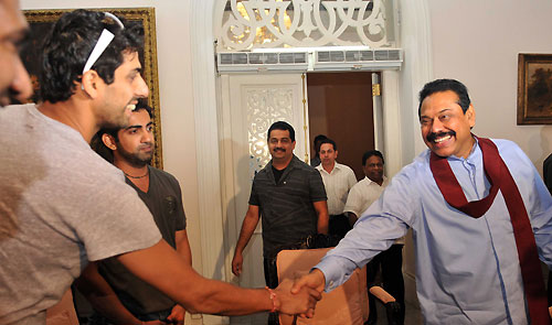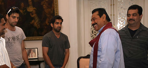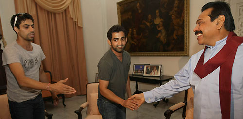 Indian opening batsman Gautam Gambhir and left-arm fast bowler Ashish Nehra met with President Mahinda Rajapaksa at Temple Trees on Monday evening after receiving Ayurvedic treatments in Sri Lanka. Both players who are playing for Delhi Daredevils received treatments in Sri Lanka for the injuries obtained while playing in the current IPL.