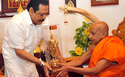 “What we need is a violence-free political culture. We do not need biased politics. Our desire is to see a political system that can bring about benefits to the country and the people,” the Thera said. The Mahanayake Thera made these comments when Ms. Anoma Fonseka, the wife of General Sarath Fonseka visited him yesterday in Kandy. The Mahanayake Thera added after entering politics a person would have to face a variety of problems and expectations would be realized only by facing obstacles with patience. “if anyone wishes to serve the people they have to go forward with patience. We do not approve the kind of politics that makes people throw mud at each other. Throwing mud will not help anyone to succeed. “We approve only those involved in gentlemanly politics. All must be prepared to do politics free of insulting and cursing others. “Causing destruction to buildings and property cannot be condoned by us. When problems arise, we should solve them through dialogue alone and not by force or harassment. One should be prepared to listen to criticism also” he said. The Mahanayake Thera blessed Ms. Anoma Fonseka and the group and blessed the hopes and expectations of the Democratic National Alliance. The party’s manifesto was also presented to the Mahanayake Thera. The group visited the Temple of the Tooth Relic- Sri Dalada Maligawa to offer flowers and receive blessings. Courtesy: Daily Mirror