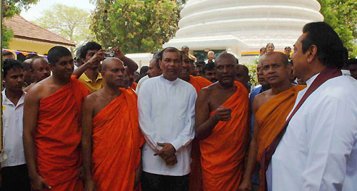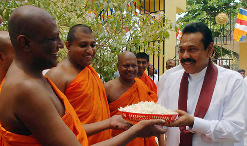 President Mahinda Rajapaksa paid a visit to Naga Vihara, the historic Buddhist Shrine at Jaffna town yesterday on 1st of April. Venerable Maha Sanga headed by Chief Incumbent of the Naga Vihara Ven. Meegahajathure Gnanarathana Nayaka Thero invoked blessings on President Rajapaksa after he engaged in religious observances at the temple. President also visited to the Nallur Hindu Temple.