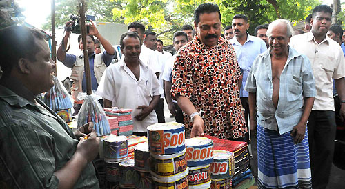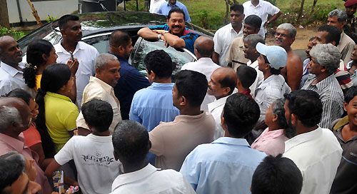 President Rajapaksa talked to his countrymen, most of them are his party supporters and requested that they cast their vote to give him a clear mandate and a solid majority in parliament which is absolutely crucial for rapid development of the country through unwavering stability after eliminating terrorism. At Ranna town he talked to a fire cracker seller and also purchased a lottery ticket. People of those towns were surprised and overwhelmed to see the head of the state talking to them just like an ordinary person. Pix by: Chandana Perera