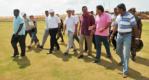 President Rajapaksa inspects the proposed International Cricket Stadium in Hambantota