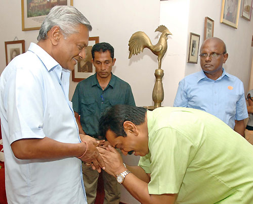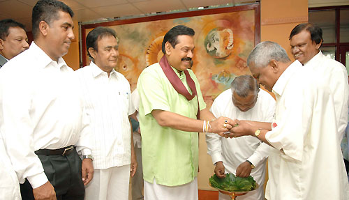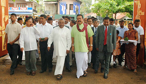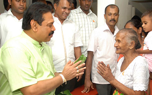 When the whole country celebrates Sinhala and Tamil New Year in a peaceful environment after eliminating three decades of terrorism, President Mahinda Rajapaksa also observed the “Sinhala Aluth Avurudu Sirith” at Carlton House in Medamulana, Weerakatiya. Locals in hundreds from the President Rajapaksa’s home town, gathered at Carlton House to join with the Head of the state on New Year’s Day to follow the traditions. According to the locals this is an annual event where Rajapaksa family shares Aluth Avurudu Sirith with them.