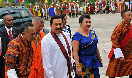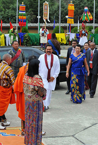 Previous SAARC Summit was held in Colombo when Maldives declined to host it as scheduled before due to the volatile political atmosphere in the islands. In Colombo Summit Chairmanship was handed over to President Rajapaksa. Earlier President Mahinda Rajapaksa and Madam Shiranthi Rajapaksa were warmly welcomed to the SAARC Summit by the Prime Minister of the Buthan Mr.Jigmi Y.Thinley and Madam Thinley at Thimpu at the Summit Venue. The Thimpu summit marks the silver jubilee celebration of the SAARC which was formed in Bangladesh in December 1985 with the aim of eradication poverty and improving the living standard of the people in the region through mutual cooperation. Foreign Minister G.L.Peiris, Secretary to the President Lalith Weeratunga, Foreign Secretary Romesh Jayasinghe, Sri Lankan High Commissioner for India Prasad Kariyawasam, MP Mr. Namal Rajapaksa , MP Sajin Vaas Gunawardena and the members of the Sri Lankan delegation also participated the summit. Pix by: Sudath Silva