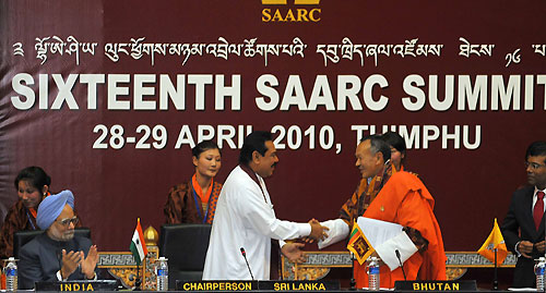 The 16th South Asian Association for Regional Cooperation (SAARC) Summit commenced in a grand style in Thimpu, the Capital city of Bhutan this morning on 28th April and it was graced by the eight leaders of the SAARC counties. At the beginning of the summit President Mahinda Rajapaksa handed over the Chairmanship of the SAARC to Prime Minister of Bhutan Jigmi Y Thinley, the leader of the host country during the inauguration of the SAARC summit.