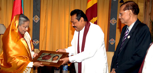 Prime Minister of Bangladesh Mrs.Shikh Hasina called on President Mahinda Rajapaksa at the Sri Lanka House on the sidelines of the 16th SAARC Summit in Thimpu, the capital city of Bhutan.