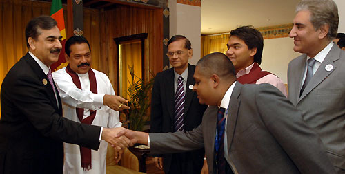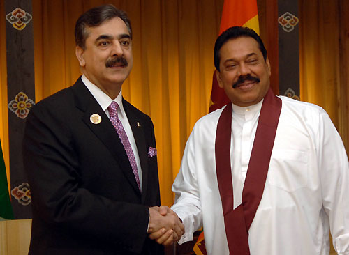 During the meeting both leaders discussed wide range of bilateral issues specially expanding and increasing investments, trade and business links between two SAARC nations. Mrs Hasina explained the huge demand for Bangladeshi ceramic, leather, pharmaceutical and other quality products around the world and the government’s investment friendly policy to attract new customers. Both leaders didn’t forget to congratulate each other for their landslide victories in recently held elections. Later President Mahinda Rajapaksa had bilateral meeting with Mr.Syed Yosaf Gillani, the Prime Minister of Pakistan at Sri Lanka House in the SAARC village. During the discussions Pakistan Prime Minister said they would continue their assistance in Sri Lanka military training, its defence requirements and equipments. Pakistan leader also promised to extend their support to Sri Lanka Air Force. Both leaders agreed to promote their friendly relations in all fields especially defence, trade, business and sports. Prime Minister Gillani also reiterated his earlier invitation extended to President of Sri Lanka to visit Pakistan. Pakistan is one of the major friendly allies of Sri Lanka at the war against terrorism. Earlier President Mahinda Rajapaksa had bilateral discussions with President of Maldives Mohomed Naseed and Prime Minister of Nepal Madhav Kumar. He is also scheduled to hold bilateral talks with other SAARC leader including the Prime Minister of India Dr. Manmohan Singh with the sidelines of the summit on the final day. During these discussions President Rajapaksa introduced the Sri Lankan delegation including his son Namal Rajapaksa and Sajin De Vas Gunawardane, the new members of parliament. Foreign Minister Prof G.L. Peiris, Foreign Secretary Romesh Jayasinghe and Sri Lankan officials were present at the occasion. Pix by: Nalin Hewapathirana
