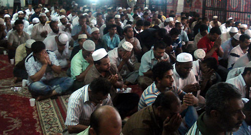 The annual Ramadan celebrations jointly organized by the Sri Lankan .Embassy and the Sri Lankan Manpower Welfare Association ( SLMWA ) of Kuwait was held at the Embassy premises amid a gathering of over 1500 devotees belonging to all ethnic and religious denominations. The program of activities commenced on 27th evening continued till early hours of 28th morning which included special prayers, religious discourses, breaking - fast, Ifthar, Suhoor etc. The SLMWA members under the guidance of its President, Mr. Nelson Christopher made excellent arrangements for the occasion while staff of the Embassy volunteered to extend their fullest support and cooperation toward the success of this worthy endeavour.