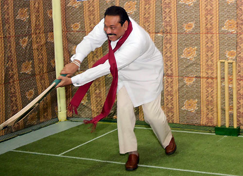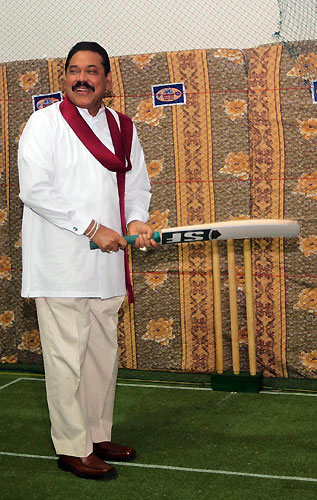 President Mahinda Rajapaksa played few cricket strokes to inaugurate the newly built Indoor Cricket Stadium in Badulla by Sri Lanka Cricket (SLC) this morning on 4th September. He thoroughly enjoyed playing cricket without opposition players while opening the venue for public in a grand style.