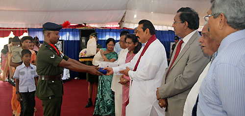 Another twenty seven (27) new houses constructed under the Second Phase of Api Wenuwen Api housing programme were ceremonially handed over to the war heroes and their families by President Mahinda Rajapaksa (today) on 5th September at Thorayaya in Kurunegala.