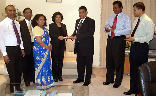 The Seva Vanitha Unit of the Sri Lankan Embassy in Kuwait, out of funds raised through promotional events and charitable activities, has donated Rs. 01 million toward the welfare of the needy children in Sri Lanka. At a simple ceremony held at the Embassy on 29th September 2010, Mrs. Ramanika Dissanayake, Chairperson of the Seva Vaitha Unit on behalf of its members handed over a bank draft to the value of Rs. 01 million and a letter addressed to Chairperson / Seva Vanitha Unit of the Ministry to Mr. Asoka Girihagama, Director General / OAD of the Ministry of External Affairs , who is on an official visit to Kuwait accompanied by Mr. J.H. Liyanage, Director/ Internal Audit & Investigation and Mr. M.R.H. Swarnathilake, Director/Mission Accounts. While accepting the cheque Mr. Girihagama appreciated the generosity and commitment with which the members of the unit have devoted themselves for a worthy cause. Mrs. Iresha Perera, Treasurer of the Seva Vanitha Unit was also present on the occasion. The members of the Unit over the 1½ years have undertaken various activities aimed at promoting Sri Lanka's culture, arts & dance, food, handicraft, fashion, etc. through which substantial funds have been raised for the benefit of deserving children, women and others. Part of the funds raised have been already directed to charitable endeavours. The activities of the Seva Vanitha Unit have been patronized and supported by the members of the Ministry Seva Vanitha Unit and the Sri Lankan community and well-wishers in Kuwait.