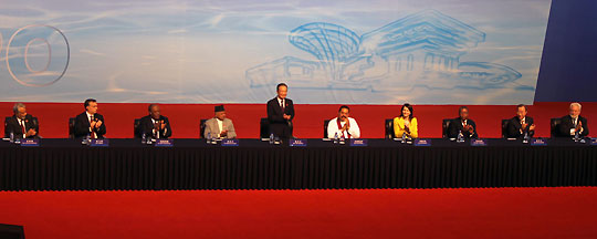 The 180 days event which comes to a close on 31st October has attracted more than 70 million visitors. The EXPO 2010 exhibition under the theme ‘Better City- Better Life’ is showcasing the urban life of world cities in the 21st Century. External Affairs Minister Prof.G.L.Peiris, Housing & Construction Minister Wimal Weerawansa, Organaizer of the Sri Lanka Pavilion Hubert Jayakody and the members of the Sri Lankan delegation were also participated at the inspection visit with the President. Sri Lanka's President Mahinda Rajapaksa participated the closing ceremony of the Shanghai EXPO 2010 International Trade Exhibition in Shanghai, China today on 31 October. The six month long trade exhibition under the theme of ‘Better City- Better Life’ is showcasing that the modern day urban life in the 21st Century has exceeded its target of more than 70 million visitors. Wen Jiabao, Prime Minister of China, Viktor Orban, Prime Minister of Hungary, Mari kivinlemi, Prime Minister of Finland, Hubert Ingraham, Prime Minister of Bahamas, Pakalitha Mosisili, Prime Minister of Lesotho, Ram Baran Yadav, President of Nepal and Ban-Ki-Moon, General Secretary of the United Nations and a number of state leaders of leading countries, foreign delegates, Chinese government officials and many more distinguished guests attended the final day of the event. Pix by: Sudath Silva