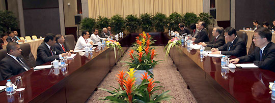 President Mahinda Rajapaksa concluded a bilateral discussion with Wen Jiabao, Prime Minister of China short while ago at Xijiao Guest House in Shanghai on 31 October. President Rajapaksa is currently in China on a two day state visit to participate the closing ceremony of the Shanghai EXPO 2010 trade exhibition. He was invited as a special guest by the government of China along with number of head of states including Finland and Hungary. In the course of this visit, the President took the opportunity to visit the Sri Lankan Pavilion at the EXPO 2010 Trade exhibition. This exhibition will fulfill an important role in facilitating increase bilateral trade between the Republic of China and Sri Lanka and the rest of the world.