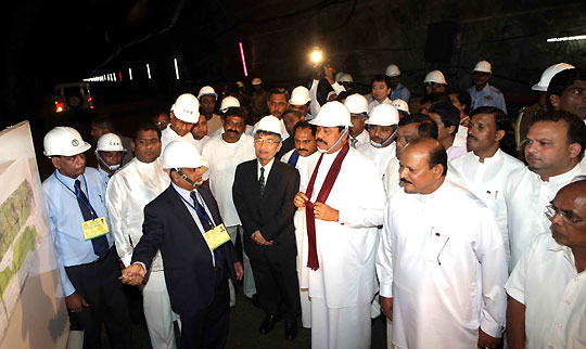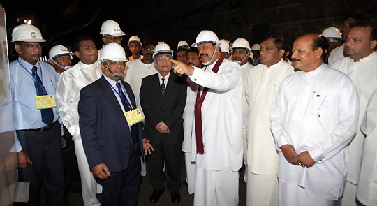 President Mahinda Rajapaksa declared open the Upper Kothmale tunnel which is considered to be the longest tunnel in the country this morning (Thursday) on 04 November. This tunnel is 12.9 km in length and has a diameter of 5.2 meters to carry water from the Kothmale stream to the Kothmale Hydro-power plant which is an underground powerhouse located at Niyamgamdora.