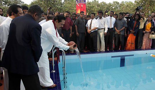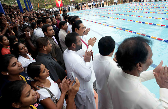 President Rajapaksa inaugurates new swimming pool at Jayawardenapura University
