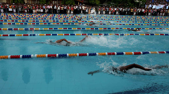 Vice Chancellor of the University Dr. N.L.A. Karunaratna said the swimming pool will help to enhance sports skills of the students. S.B.Dissanayake, Minister of Higher Education, Bandula Gunawardane, Minister of Education, Namal Rajapaksa MP and Vice chancellor Dr.N.L.A.Karunaratna were also present. Pix by: Sudath Silva