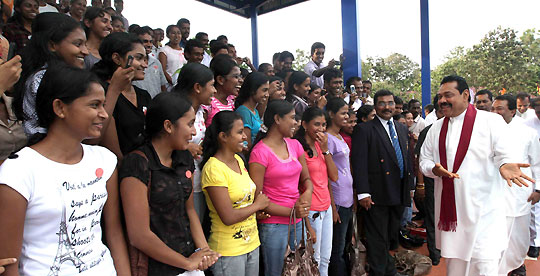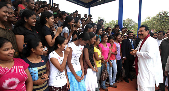 President Mahinda Rajapaksa inaugurated the new swimming pool constructed on the Sri Jayawardenapura University premises today on 15 November. The project costs Rs.85 million and Tharunyata Hetak Organisation and D.A. Rajapaksa Memorial, Education and Cultural Fund have granted funds for it. Pictures are seen here after the opening ceremony President Rajapaksa had friendly discussions with the university students.