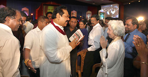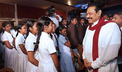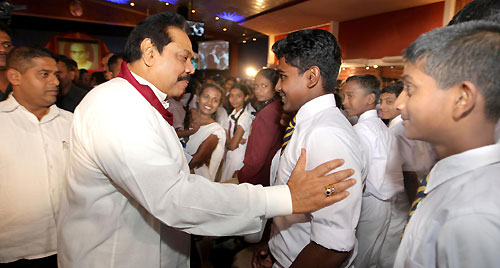 Addressing the Ananda Samarakoon’s birth centenary celebrations T.B.Ekanayake, Minister of Cultural Affairs said that the government is fully committed to enhance the cultural and artistic affairs in Sri Lanka. Professor Sunil Ariyaratne delivered the key note speech of the anniversary. Samarakoon was born Egodahage George Wilfred Alwis Samarakoon to a Christian family in Padukka, Sri Lanka on January 13, 1911. Later he changed his name to Ananda Samarakoon and embraced Buddhism. He had his primary and secondary education at Christian College, Kotte, presently known as Sri Jayawardenapura Maha Vidyalaya, Kotte. He studied at Shanthi Niketan in India. He was very much influenced by Rabindranath Tagore while in India and his fascination and the desire to imitate the great Indian musician would go on to take him in the direction of creating a musical tradition for the Sri Lankan people. Mr. Samarakoon died on 05 April 1962 at the age of 51. Ananda Samarakoon was very patriotic and a versatile musician/ composer. He is memorable forever in the Sri Lanka’s history and his literary and music creations are of eternal value. He is also considered as the father of artistic Sinhala music and founder of the modern Sri Lankan Geeta Sahitya (Song Literature). A large number of artistes, distinguished guests and school children participated in the ceremony at Temple Trees. The President is seen here interacting with school children. Secretary to the Cultural Affairs Ministry Wimal Rupasinghe, Professor Carlo Fonseka were also among the invitees at the occasion. Pix by: Sudath Silva