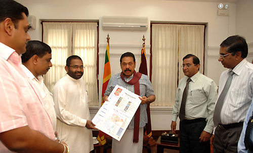 Progress report of the’Deyata Kirula- 2011’ Development Exhibition which was held in Buttala area in Monaragala district concurrently with the 63rd Independence Day celebrations, presented to President Mahinda Rajapaksa by the Chairman of the Exhibition Organising Committee Minister Ranjith Siyambalapitiya at the Temple Trees on 16 February. Expressing his ideas, the President thanked all including the Ministers, local politicians, government officials, Police, three armed forces and the general public who helped in numerous ways for the success of the Deyata Kirula-2011. This year Deyata Kirula (Crowning the Nation) exhibition held under the theme of Aascharyaye Kirula (Crown of Wonder) from 04 to 10 February. There were altogether nearly 300 exhibition stalls at the site, out of which 100 stalls were from the private sector institutions. In conjunction with the exhibition, massive infrastructure development projects carried out in the Moneragala district during the last few months covering road, water supply, electricity, health, housing and local school development projects. Vesting of all those projects to the people of the area took place during the Exhibition Period. Minister Jagath Pushpa Kumara, Chief Minister of Uva Province Shashendra Rajapaksa and several officials were also present at the occasion. Pix By: Nalin Hewapathirana