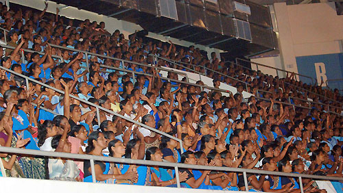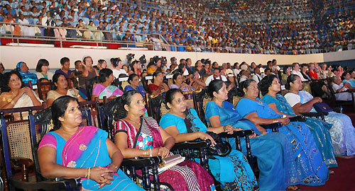 The Colourful celebration was organized to mark the centenary of IWD by the SLFP women's organizations and the theme of this year’s Women’s Day is “Daughters of Wonder- Bringing together the great daughters of the land to build a magnificent Sri Lanka”. Addressing the gathering President Rajapaksa said that it was women who were mostly battered due to thirty years of brutal terrorism in Sri Lanka. He has to fulfill a great responsibility and duty towards the mothers, sisters and daughters who have suffered in the North and East as well as the South due to this menace, the President further added. The ‘Mathata Thitha’ programme was launched and smoking was banned in public places to strengthen women’s lives. He said that the women waited near school gates to protect their children from terrorism and at the same time they sacrificed their children to the security forces. The President stated that the women were given the power to setup the Government and the same responsibility is now being bestowed on them to build the country and therefore women should be given leadership. They are playing a crucial role in the country’s economy and the development drive. That is why the women have been given the responsibility to effectively carryout the programme of one mllion economic units. He noted that he is aware of the strength, courage and determination of women in Sri Lanka. While speaking at the ceremony President Rajapaksa made these remarks and further stated that his UPFA government has always act committed to fulfill the responsibilities on its part for the betterment of the women. Furthermore, he is always ready to give opportunity to the voice of the women to be heard to safeguard their rights and said that around 150 female candidates are contesting for the upcoming local government elections under the UPFA ticket. The President also praised the service rendered by late Prime Minister Sirimavo Bandaranaike and current MP Kamala Ranathunga to the party and the country. A former Minister for Women & Child Development, ex-General Secretary of the All India Congress Committee, senior leader of the Indian National Congress and the present Governor of the Indian State of Uttarakhand Mrs. Margaret Alva participated in the occasion as the guest of honour. The Vihara Maha Devi Award was presented to the President Rajapaksa’s mother Dandina Dissanayake Rajapaksa at this ceremony. President’s sister Gandhini Rajapaksa accepted the award on behalf of the late mother. Women's Affairs Minister Tissa Karalliyaddha, Ministers Maithripala Sirisena, Basil Rajapaksa, Dullas Alahapperuma, Pavithra Wanniarachchi, Dr. Sudharshani Fernandopulle MP, Parliamentarians, Foreign Diplomats, adviser of SLFP women's organizations Pushpa Rajapaksa, Secretary, Ashoka Lankathilake, Treasurer, Kumari Balasuriya and large number of representatives of SLFP women’s organizations, celebrities and many special guests were amongst those who participated in the occasion. Pix by: Nalin Hewapathirana