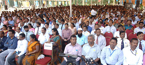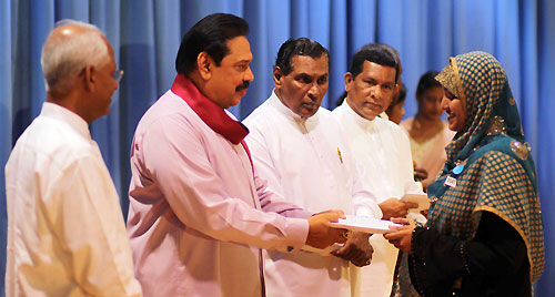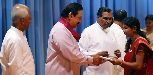 Addressing the gathering President Rajapaksa said that as it mention in the ‘Mahinda Chinthanaya’ his government has made a mammoth service to strengthen the government service which was planned to be made ineffective and thereby either dissolve or privatize it by the previous government. The President has further said that similar to the action taken to eradicate the so called boarder villages, steps have being taken now to eradicate the remote, poor and backward villages from the map of Sri Lanka. Therefore that those who received new appointments should be prepared to work in any part of the country with happiness for the benefit of the people and the country. President Rajapaksa emphasised that it is the ultimate goal of Sri Lanka to become a wonder nation of Asia and the government servants should be in forefront and the pioneers in marching towards that target. Minister of Public administration W.D.J. Senewiratne, Deputy Minister Wijaya Dahanayake, Secretary to the President Lalith Weeratunga and the Secretary of the Ministry P.B.Abeykoon and several others participated in the function. Pix by: Sudath Silva