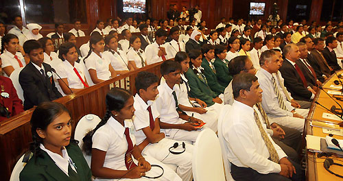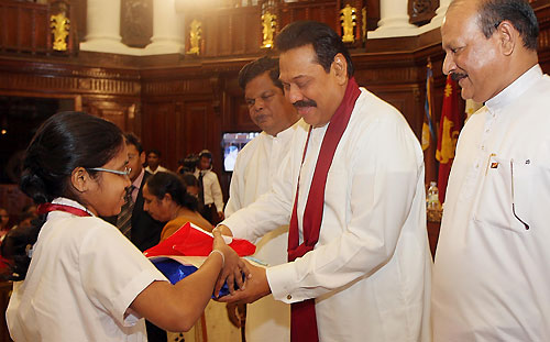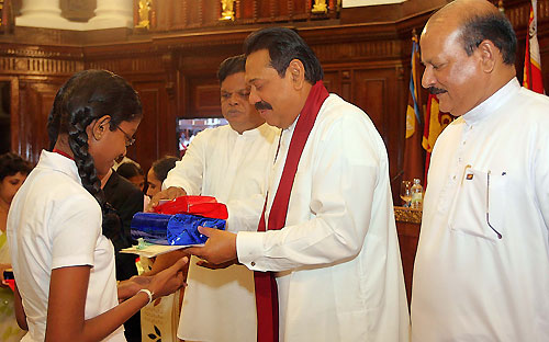 The government of Sri Lanka recognized over 134 students who performed outstandingly at the highly competitive national exam- G.C.E. Ordinary Level examination in December 2010. These young talents, the country's best students who scored highest marks received their medals, certificates and gift packs including a pass book with a deposit of Rs 5,000 from President Mahinda Rajapaksa at the Presidential Secretariat on 08 April 2011.